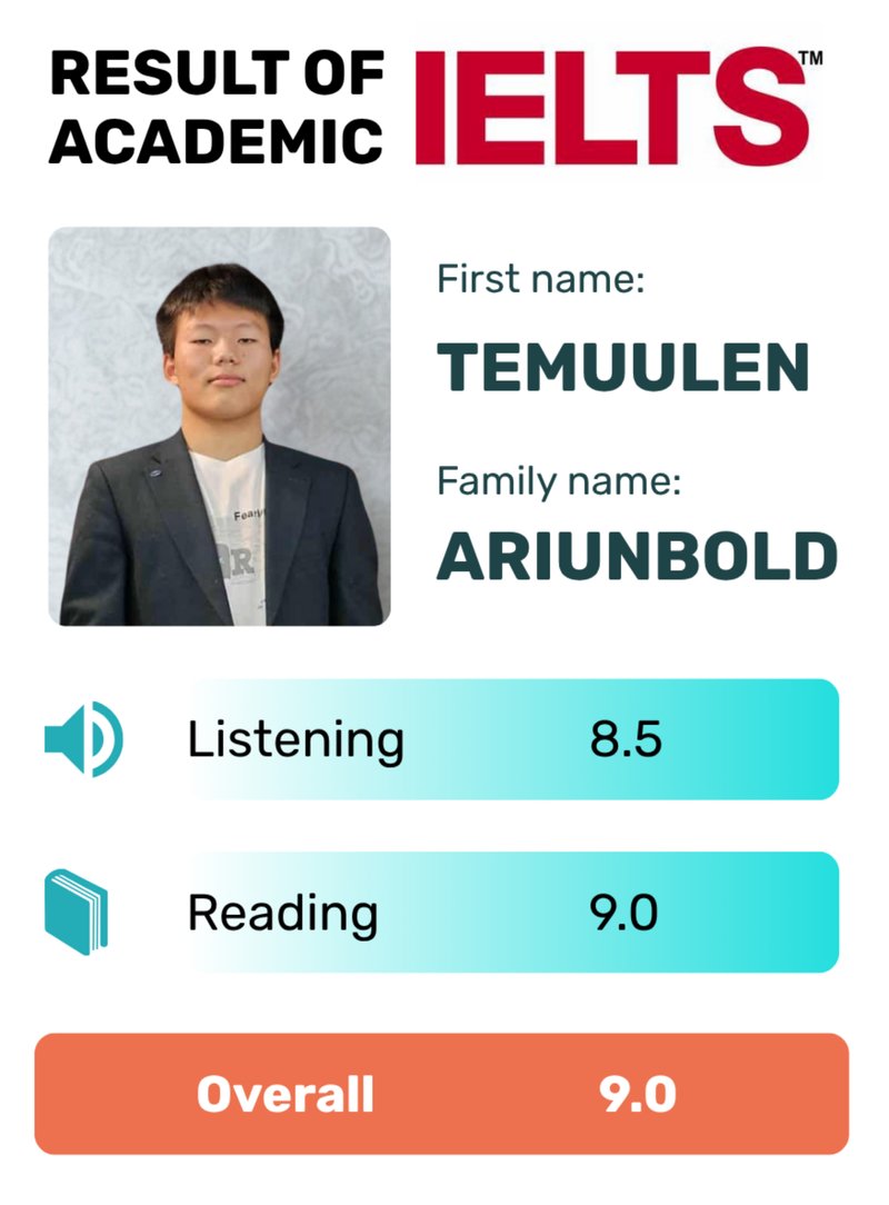 Энэхүү аргачлалд суурилсан Xreading цахим номын сангаар суралцсан уншигч сурагчид IELTS олон улсын шалгалтад өндөр оноо авсаар байгаа билээ. Жишээ дурдвал: